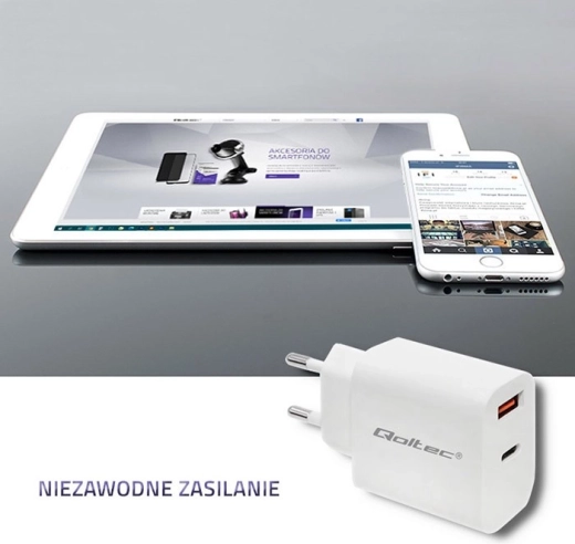 Mrežni punjač Qoltec 18W s Power Delivery i Quick Charge osigurava brzo i sigurno punjenje. Idealan za dom i ured.