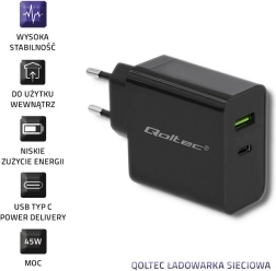 POWER DELIVERY (PD) pametno prilagođava napon i struju priključenom uređaju te zahvaljujući modernom sučelju USB‑C pruža visoku učinkovitost i univerzalnost. Snaga 45 W dovoljna je za pametne telefone, tablete i odabrane prijenosnike, pa jedan punjač možete koristiti za više uređaja.
