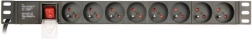 Napojna jedinica (PDU), 8 francuskih utičnica, 1U, 10A, Schuko utikač, 3 m kabel