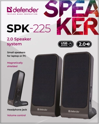 Zvučnici DEFENDER SPK-225 donose pouzdan zvuk u kompaktnom kućištu koje stane na svaki stol. Zahvaljujući napajanju putem USB-a ne trebaju poseban adapter i jednostavno se povezuju s prijenosnim ili stolnim računalom. Minimalistički dizajn s tekstilnom mrežicom uklapa se u svaki interijer.