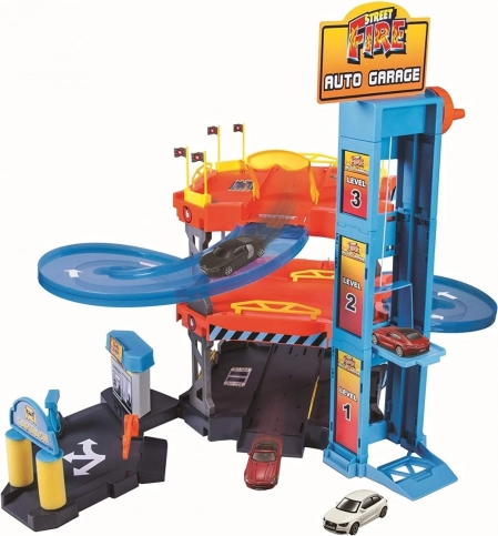 Ova šarena višerazinska garaža iz linije Street Fire donosi djeci mnoštvo scenarija za kreativnu igru. Zahvaljujući ručnom dizalu lako premještate auto između katova, dok spiralna rampa osigurava brze spusteve i glatku vožnju. U kompletu su također autopraonica i metalni model u mjerilu 1:43, pa zabava može početi odmah nakon raspakiravanja.