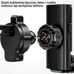 Elegantni i funkcionalni držač za automobil koji se montira izravno na ventilacijsku rešetku. Zahvaljujući gravitacijskom mehanizmu dovoljno je umetnuti telefon i krakovi se automatski stežu. Trokutasta konstrukcija pruža visoku stabilnost čak i pri naglom kočenju, pa vaš pametni telefon ostaje sigurno na mjestu.