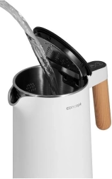 Stilski dizajn: Kuhalo Concept RK3300 Salt-Pepper ukrašava svaki dom. Njegov efektan izgled naglašava mat bijelo tijelo na minimalističkoj osnovi, dopunjeno elegantnom drvenom ručkom. S kapacitetom od 1,5 l lako priprema do 6 šalica omiljenog vrućeg napitka.