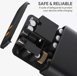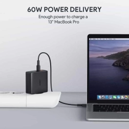AUKEY PA-D5 je moderan mrežni punjač s GaN tehnologijom koja donosi veću učinkovitost u manjem kućištu. Pri spajanju jednog uređaja pruža do 60 W za brzo punjenje prijenosnih računala, tableta i telefona. Pri korištenju oba USB‑C porta, inteligentno upravljanje Dynamic Detect raspodjeljuje snagu, primjerice na 45 W + 18 W, za istodobno punjenje prijenosnika i pametnog telefona.