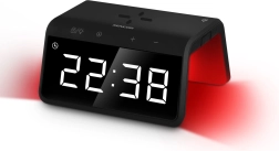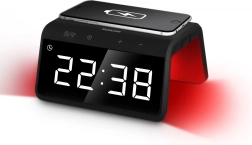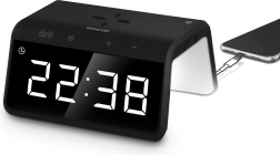 Uljepšajte svoj noćni ormarić stilskim budilnikom koji spaja praktične funkcije s modernim dizajnom. Velik i lako čitljiv LED zaslon jamči jasnu vidljivost vremena danju i noću, dok integrirani bežični punjač održava vaš pametni telefon uvijek spremnim.