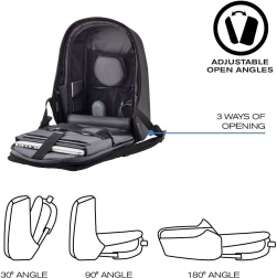 Pametan gradski ruksak s zaštitom od krađe i promišljenom organizacijom. Nudi skrivene patentne zatvarače i džepove s RFID zaštitom, materijal otporan na rezanje i vodu, podstavljene pretince za 15,6" prijenosno računalo i 12,9" tablet te integrirani USB priključak za punjenje. Ergonomske naramenice, reflektirajući elementi i mogućnost otvaranja pod kutom od 180° čine ruksak idealnim suputnikom za putovanja i svakodnevno putovanje na posao.