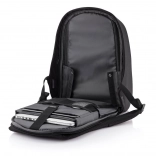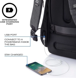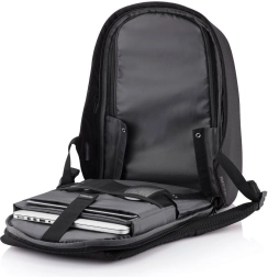 Putujte i svakodnevno putujte sigurno s ruksakom XD DESIGN Bobby Hero XL u elegantnoj crnoj boji. Nudi antikradnu konstrukciju s otvaranjem sa stražnje strane, skrivenim patentnim zatvaračima i RFID džepovima, materijal otpornan na rezanje i vodu, ergonomske naramenice te bogatu unutarnju organizaciju s mjestom za prijenosno računalo 17″ i tablet 12,9″. Integrirani USB priključak, reflektirajući elementi i materijal od recikliranog RPET-a čine ga idealnim izborom za grad i putovanja.