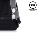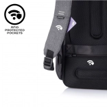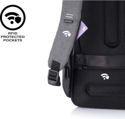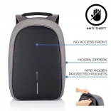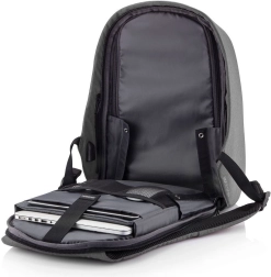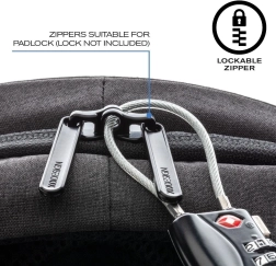 Ruksak se otvara isključivo sa stražnje strane, što otežava pristup lopovima. Skriveni džepovi i patentni zatvarači pružaju dodatnu zaštitu.