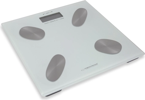 Održavajte kontrolu nad svojim tijelom uz osobnu vagu Esperanza CHA-CHA. Moderan dizajn od kaljenog stakla debljine 6 mm savršeno će se uklopiti u svaku kupaonicu, a pregledan LCD zaslon osigurava lako čitanje rezultata. Zahvaljujući funkcijama za mjerenje tjelesne masnoće, tjelesne vode i mišićne mase dobit ćete cjelovit uvid u svoju kondiciju.