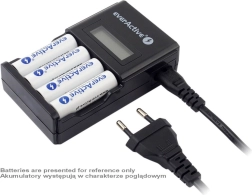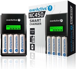 Crni punjač everActive NC-450 izrađen je od kvalitetne ABS plastike, koja jamči visoku izdržljivost i estetski izgled. Opremljen je s 4 neovisna kanala punjenja, što omogućuje punjenje različitih kapaciteta i veličina Ni-MH baterija (AAA/R03 i AA/R6).