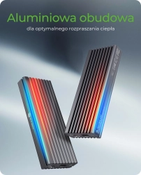 Masivno aluminijsko kućište s rebrima, unutarnji hladnjak i termalna podloga pouzdano odvode toplinu s M.2 SSD‑a i smanjuju throttling pri dugotrajnim prijenosima.