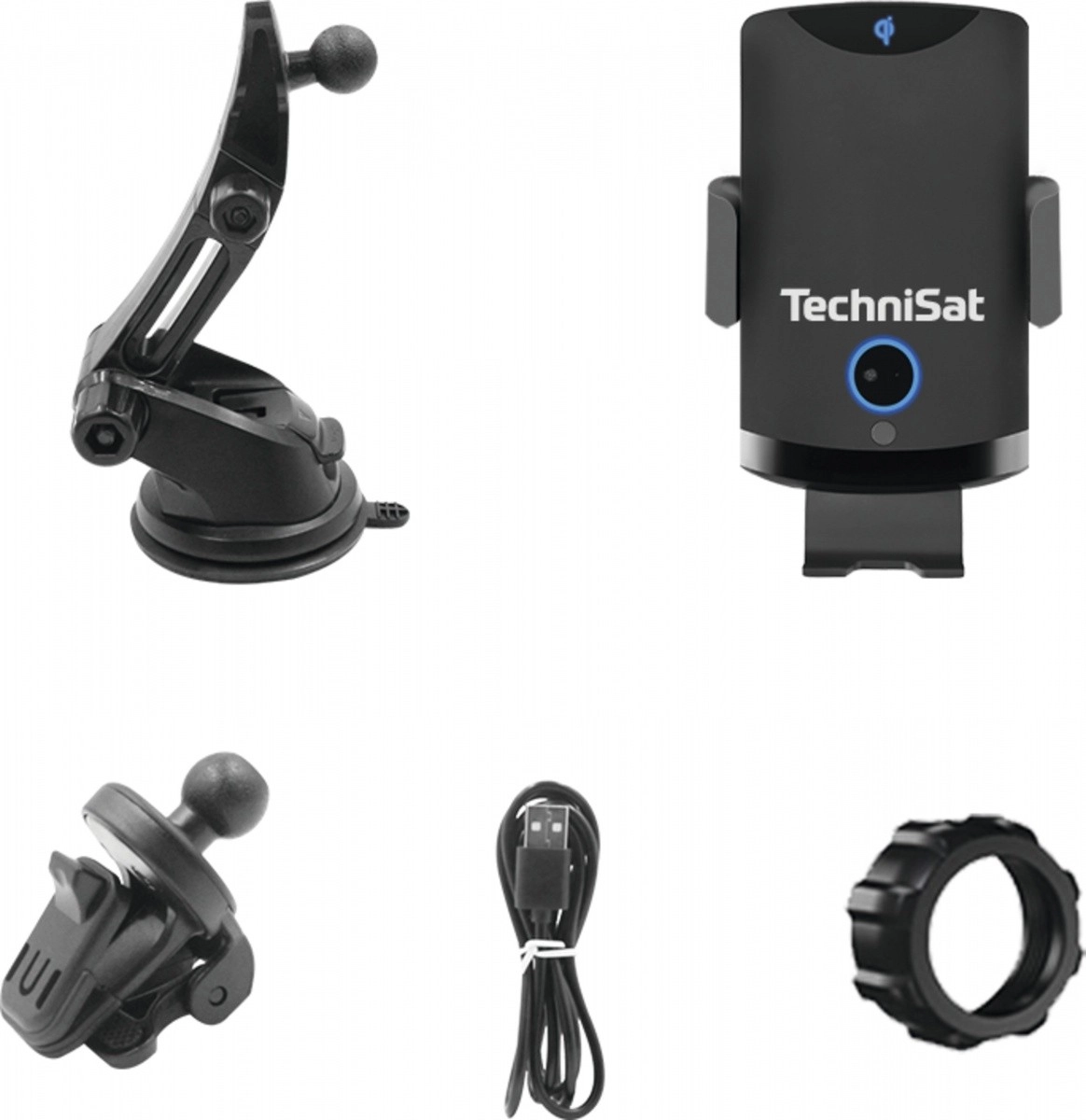 - Držač s bežičnim punjenjem, vakuumski držač, klips za ventilaciju, USB‑C kabel, montažni prsten