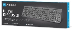 NATEC Discus 2 je tanka i stilska uredska tipkovnica dizajnirana za udobno cjelodnevno tipkanje. Tihе niskoprofilne tipke tipa chocolate osiguravaju ugodan i siguran pritisak, dok PU površinska obrada štiti tisak od trošenja. Moderan izgled i ravan profil savršeno se uklapaju u svako radno okruženje.
