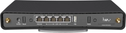 Na kućištu se nalazi nekoliko Gigabit Ethernet priključaka za brzo žičano povezivanje, USB priključak za dijeljenje i indikatori statusa za jednostavnu kontrolu rada. Kompaktno kućište s učinkovitim hlađenjem osigurava tih i pouzdan rad.