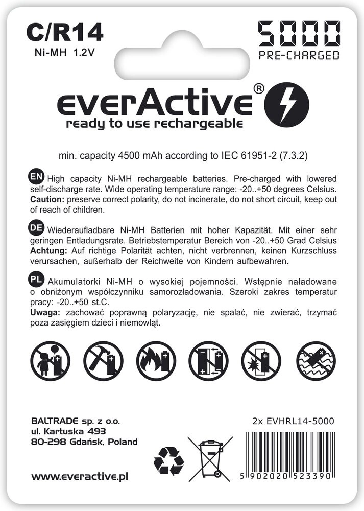 Ovi akumulatori marke EverActive izvrsni su za uporabu u svjetiljkama, igračkama i drugim uređajima. Zahvaljujući tehnologiji „ready to use” mogu se koristiti kao izravna zamjena za alkalne baterije.