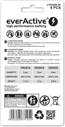 Set litijskih baterija everActive sadrži 4 x CR2032, 2 x CR2025 i 2 x CR2016. Idealno za široku upotrebu u raznim uređajima.