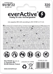 Punjaiva baterija everActive 9V 320 mAh Ni-MH idealan je izbor za profesionalnu uporabu. S tehnologijom „spremna za uporabu” izvrsna je zamjena za alkalne baterije.