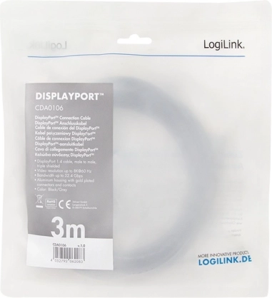 LogiLink DisplayPort–DisplayPort kabel dizajniran je za zahtjevne scenarije prikaza – od profesionalne grafike do fluidnog gaminga. Podrška za rezolucije do 7680 × 4320 (8K) pri 60 Hz donosi iznimnu oštrinu, precizne boje i glatko osvježavanje.