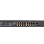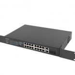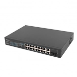- Ukupno 18: 16× Fast Ethernet PoE/PoE+ + 2× Combo Gigabit uplink