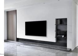 Nosač ima vrlo smanjenu dubinu od 2,3 cm, što omogućuje elegantnu instalaciju blizu zida. Ovaj proizvod je idealan izbor za moderne dnevne boravke, gdje je estetika i funkcionalnost ključna.