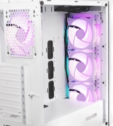 Prednja ploča opremljena je s dvije USB 3.0 i USB 2.0 priključcima za jednostavnu povezivost. Zahvaljujući četiri ARGB ventilatora i mogućnosti ugradnje još dva ventilatora, kućište osigurava izvrsno hlađenje. Ovaj model također uključuje tri filtra protiv prašine za održavanje unutrašnjosti čistom te elegantnu organizaciju kabela s brojnim gumenim prolazima.