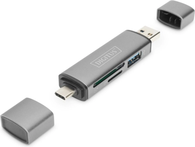 Čitač kartica s USB hubom marki Digitus omogućuje povezivanje sa pametnim telefonom, tabletom ili prijenosnikom za jednostavan pristup podatkovnim medijima kao što su USB memorije, SD i Micro SD kartice. Zahvaljujući Plug and Play dizajnu nije potrebna nikakva dodatna instalacija.