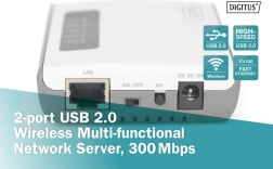 S poslužiteljem Digitus možete pretvoriti bilo koji kompatibilni USB uređaj u mrežni uređaj dostupan u lokalnoj mreži. Multifunkcionalni poslužitelj dodatno omogućuje bežično povezivanje i upravljanje uređajima putem jednostavnog web-sučelja. Savršen kao pisački poslužitelj za višenamjenske pisače ili kao NAS, omogućujući pristup podacima preko mreže ili interneta.
