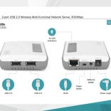 - Pretvorite USB uređaje u krajnje mrežne uređaje s bežičnim pristupom do 300 Mb/s