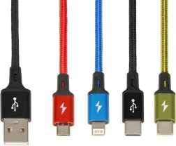 Opleteni kabel otporan je na lomljenje i petljanje, a zahvaljujući duljini 1,2 m pruža idealan omjer dosega i udobnosti. Uklonjivo označene u boji završetke lako je razlikovati radi brzog pronalaska pravog konektora i održavanja reda na radnom stolu i u automobilu.