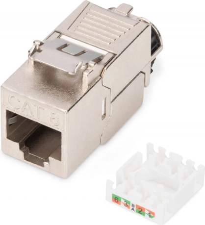 Čelični keystone modul Cat 8.1 dizajniran je za izuzetno brzo i pouzdano Ethernet povezivanje. Potpuni 360° oklop minimalizira smetnje i osigurava stabilne performanse i u zahtjevnim okruženjima. Zahvaljujući kompaktnom dizajnu odgovara 1U panelima (19", 483 mm) i omogućuje ugradnju do 24 porta.