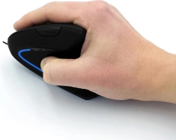 Vertikalni oblik podržava “handshake” hvat, čime se smanjuje savijanje zapešća i uvijanje podlaktice. Idealno za duge sate rada za računalom.
