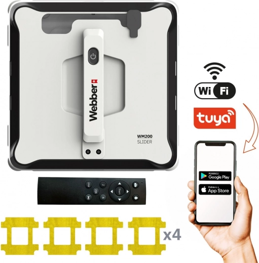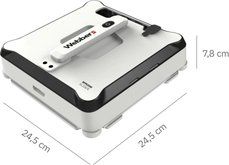 Pametni robot za prozore Webber prianja uz staklo snagom 3000 Pa i sigurno čisti i velike površine. Bezčetkasti motor osigurava tih i pouzdan rad, dok UPS sigurnosni sustav održava usis i pri prekidu napajanja. Na raspolaganju su 3 načina kretanja (Z, N, ručni) i prebacivanje između mokrog i suhog čišćenja.