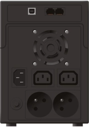 UPS je opremljen parom utičnica 230 V (Schuko) i parom IEC izlaza za jednostavno povezivanje više uređaja. Zaštita RJ11/RJ45 (IN/OUT) štiti telefonske i podatkovne linije od prenapona, a putem sučelja USB uređaj je moguće nadzirati i upravljati njime. Idealno rješenje za pouzdano napajanje u kućanstvu i malom uredskom okruženju.