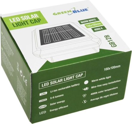Ova solarna završna kapica za stup idealna je za dekorativno i praktično osvjetljenje stupova ograda i terasa. Tijekom dana puni se sunčevom energijom, a nakon sumraka se automatski pali kako bi osvijetlila staze, stepenice i ulaze. Dulje izlaganje izravnom suncu osigurava dulje noćno trajanje.
