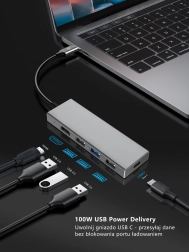 USB-C razdjelnik 7-u-1 pretvara vaš jedini USB-C priključak u multifunkcionalno središte povezivosti: