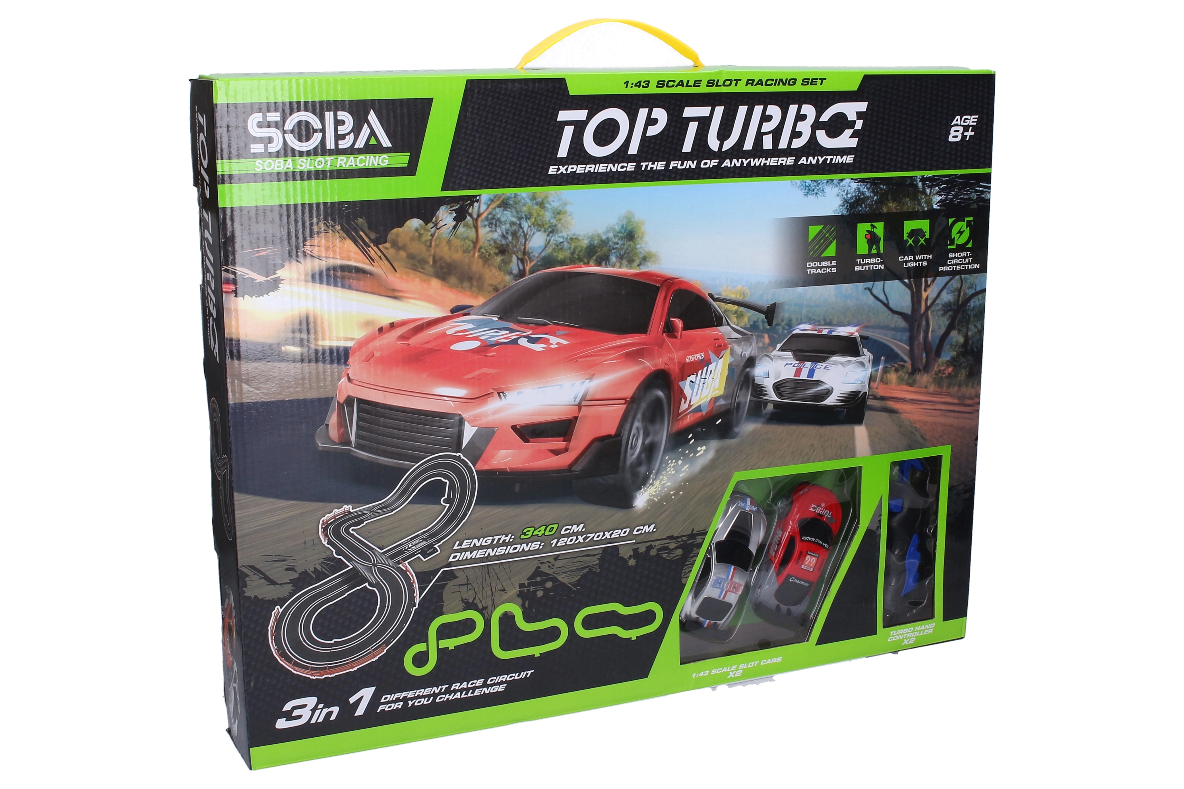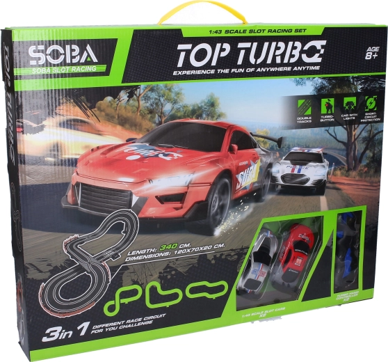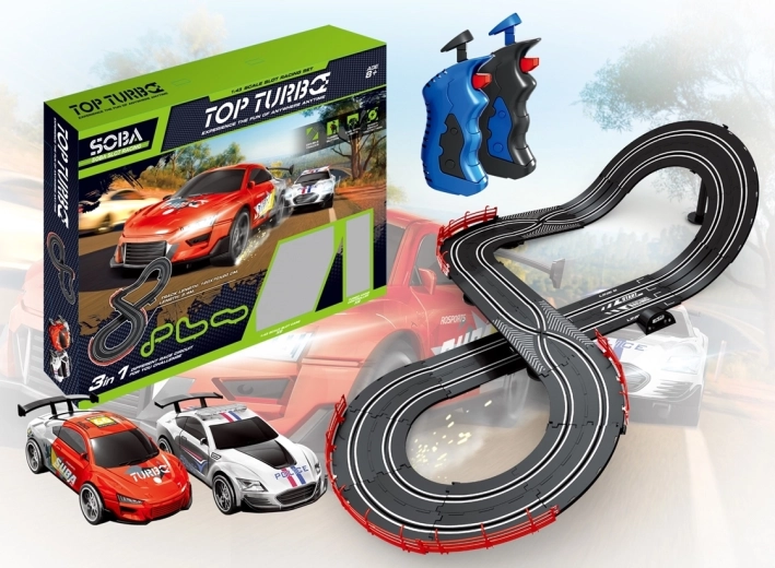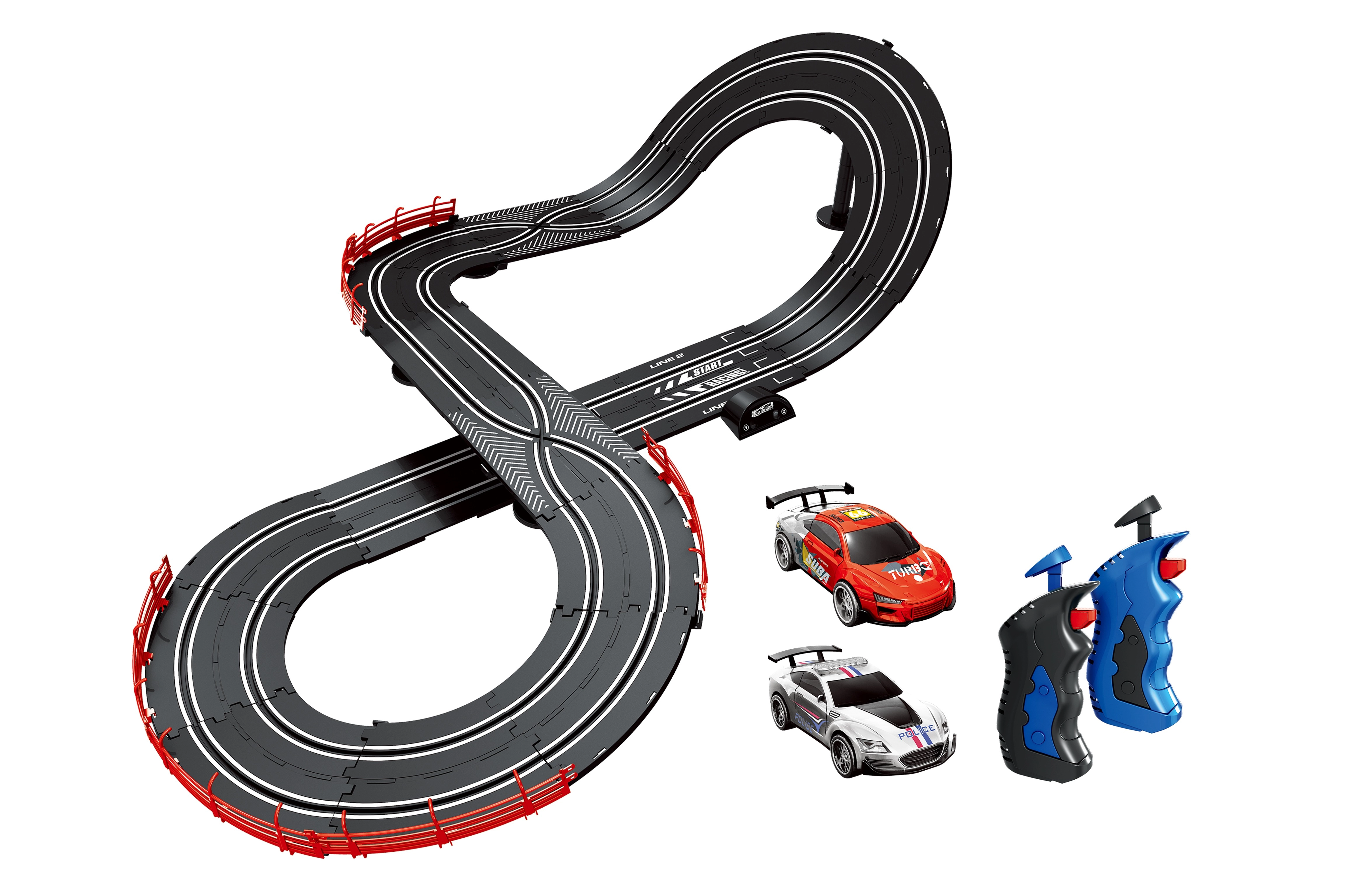 Stazu je moguće sastaviti na 3 različita načina, pa zabavu lako prilagodite sebi. Napajanje putem 12V adaptera pruža stalnu snagu bez potrebe za baterijama. Odlično kao poklon i savršeno za obiteljske utrke.