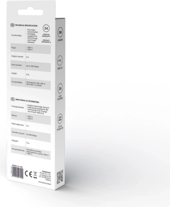 Ovaj USB-A – USB-C kabel idealan je izbor za svakodnevnu upotrebu kod kuće, u uredu i u automobilu. Duga duljina od 3 metra olakšava priključivanje i na teže dostupne utičnice, dok podrška za brzo punjenje do 2 A i brzinu prijenosa podataka 480 Mb/s osigurava glatko i pouzdano korištenje.