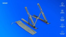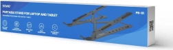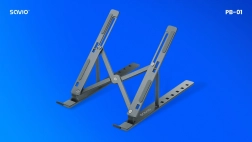 Lagan i kompaktan sklopivi stalak SAVIO PB-01 za prijenosna računala i tablete s podesivim kutovima, sprječava pregrijavanje i osigurava udobnu upotrebu.