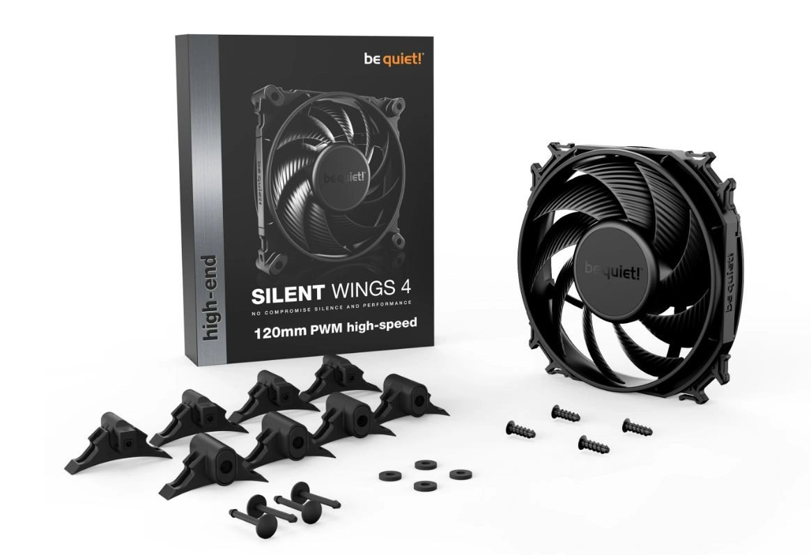 Silent Wings 4 140 mm PWM high‑speed je svestran ventilator za kućišta, radijatore i hladnjake. Zahvaljujući precizno oblikovanim lopaticama i lijevkastom okviru nudi maksimalan protok i tlak zraka bez kompromisa u buci. Elegantno potpuno crno kućište s kvalitetnom naljepnicom savršeno se uklapa u svaku gaming ili radnu konfiguraciju.