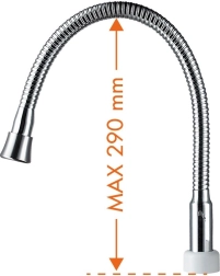 Dio pakiranja su dva tipa izljevki – fiksna za stabilan mlaz i fleksibilna za precizno usmjeravanje toka vode. Jednostavno upravljanje omogućuje brzo postizanje temperature do 60 °C, pa je pogodan za pranje posuđa, čišćenje i redovitu higijenu.