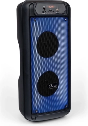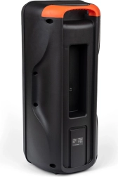 Promišljen dizajn uključuje prednju ploču s kontrolnim tipkama, portove za razna povezivanja i praktičnu ručku za lako nošenje. Paket sadrži i punjač te AUX kabel.