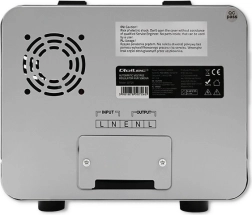 Pozadinski osvijetljen LCD prikazuje ulazni i izlazni napon. Metalno kućište, učinkovita ventilacija i ručke olakšavaju prenošenje i ugradnju u različitim okruženjima.