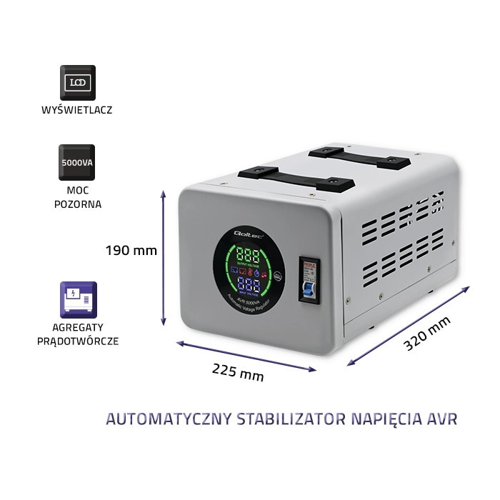 Trebate pouzdano napajati alate, kompresore, pumpe ili opremu u food trucku ili kamp-prikolici? Automatski stabilizator napona QOLTEC AVR 5000 VA izravnava mrežna odstupanja i štiti osjetljivu elektroniku. Stabilizira izlaz na sigurnih 230 V, eliminira skokove i isključuje opterećenje pri previsokom naponu kako bi se spriječila oštećenja.