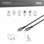 HDMI 2.1 ultra high speed kabel duljine 2 m prenosi sliku u razlučivosti do 8K/60 Hz (4K/120 Hz) uz podršku za HDR i 3D. Ne nedostaju ARC, CEC, HDCP ni Lip Sync. Pozlaćeni konektori, trostruko oklapanje i izdržljivo aluminijsko kućište s najlonskim opletem osiguravaju čist, stabilan signal za Blu‑ray, igraće konzole i streaming usluge.