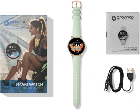 Pametni sat ORO ACTIVE PRO nudi mnogo korisnih funkcija za aktivne osobe. S 1,09" dodirnim IPS zaslonom, koji pruža jasnu i oštru sliku, sat je idealan za svakodnevno nošenje. Opremljen je funkcijama kao što su automatsko mjerenje otkucaja srca, monitor krvnog tlaka i senzor razine kisika u krvi, pomažući korisnicima imati zdravlje pod kontrolom.