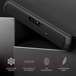 AXAGON EE25-SL opremljen je USB 3.2 Gen 1 sučeljem s brzinom do 5 Gbit/s, što omogućuje učinkovit prijenos podataka. Kompatibilan je sa svim 2.5" HDD-ovima ili SSD-ovima bez ograničenja kapaciteta i visine diska do 9.5 mm.