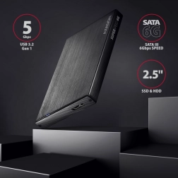 Kućište AXAGON EE25-XA6 ALINEbox namijenjeno je za SATA 2,5" tvrde diskove ili SSD-ove s podrškom za sučelje USB 3.2 Gen 1. Zahvaljujući podršci za UASP i funkciji TRIM dugoročno štiti i optimizira performanse SSD diskova. Ne samo da ćete zadržati elegantan stil zahvaljujući dizajnu otpornom na otiske prstiju, već ćete dobiti i pouzdanu zaštitu i hlađenje zahvaljujući aluminijskoj konstrukciji.