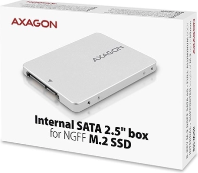 Elegantni i kompaktni unutarnji box AXAGON dizajniran je za jednostavnu ugradnju M.2 SATA SSD diskova. Ovaj box podržava različite formate diskova, uključujući B+M-key i B-key, te može smjestiti SSD do veličine 22x80 mm. Kompatibilan je sa sučeljem SATA 6G, što osigurava brzine prijenosa do 6 Gb/s.