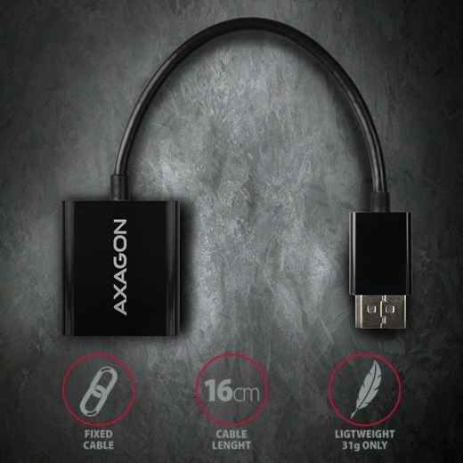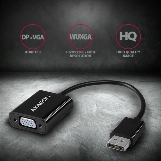 Adapter DisplayPort na VGA tvrtke AXAGON omogućuje povezivanje starijih VGA monitora, TV-a ili projektora s računalom koje ima DisplayPort izlaz bez potrebe za instalacijom softvera.