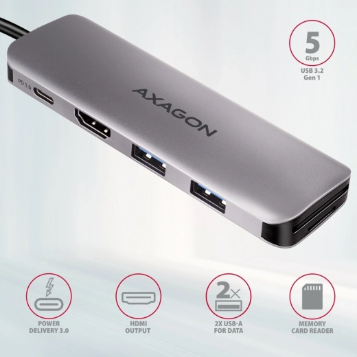 axagon hmc-5 usb-c čvorište 5u1 s hdmi 4k, 2x usb-a, čitačem sd/microsd i pd 100 w